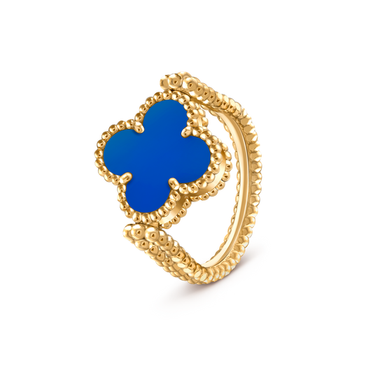שרשרת וואן קליף - חמישה מוטיבים שחורים עשוי כסף 925 מצופה זהב 18 קראט .